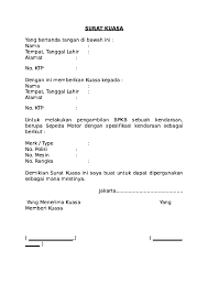 Berikut ini adalah format contoh surat kuasa pengambilan bpkb motor yang dapat dijadikan acuan. Download contoh surat lamaran kerja, perjanjian, undangan tahlil, surat cinta, curriculum vitae (cv), yang lengkap, singkat, baik dan benar, doc word dapat anda download. Jadi jangan sampai surat kuasa. Kamu ingin mengambil bpkb tapi sedang berhalangan dan tidak bisa datang langsung, tenang kamu hanya perlu membuat surat kuasa. Namun yang terpenting, dalam surat tersebut kamu harus menyertakan keterangan data diri pemilik kendaraan sebagai si pemberi kuasa dan juga yang diberi kuasa.