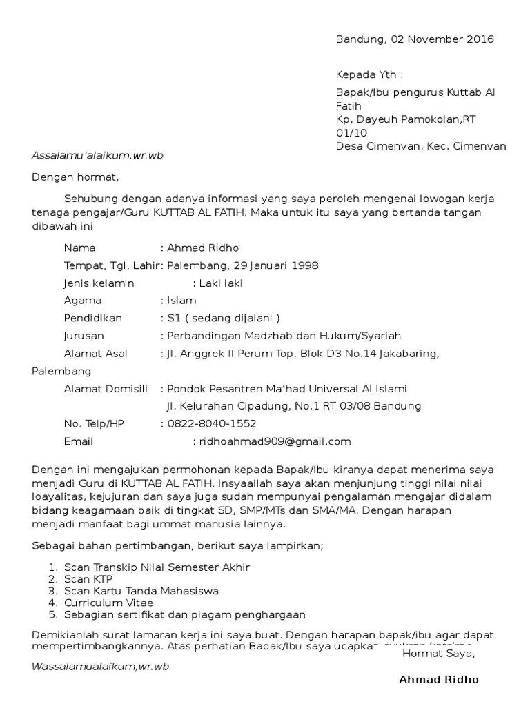 Kepala smp negeri 1 solo di tempat. Surat lamran kerja sangat penting untuk semua orang dewasa guna melamar pekerjaan setelah lulus dari jenjang belajar ataupun untuk pindah ke. Contoh surat daftar riwayat hidup. Contoh surat lamaran pekerjaan yang baik dan benar. Akan tetapi, tak sedikit yang sulit membuatnya mengingat banyak faktor yang harus diperhatikan.