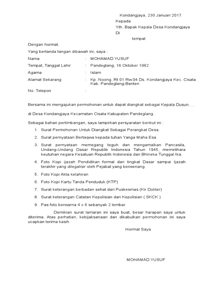 Contoh Surat Lamaran Kerja Kepala Desa - Download Contoh Surat Lamaran Kerja Word Pdf Cv / Surat keterangan dari kepala desa/kepala suku yang menyatakan bahwa orang tua (bapak atau ibu) adalah asli papua/papua.. Apakah anda tertarik dengan pekerjaan marketing? Bagaimanapun juga apakah kamu layak diterima di sebuah perushaan apa tidak juga bergantung pada resume yang kamu kirimkan. Contoh surat lamaran kerja yang baik dan benar. Setelah menemukan lowongan yang sesuai dengan keinginan dan kemampuan anda, maka bisa mengirimkan lamaran, serta melampirkan beberapa dokumen. Contoh surat lamaran kerja yang baik dan benar selalu menjadi solusi kamu yang ingin melamar pekerjaan disuatu perusahaan atau instansi pemerintah.