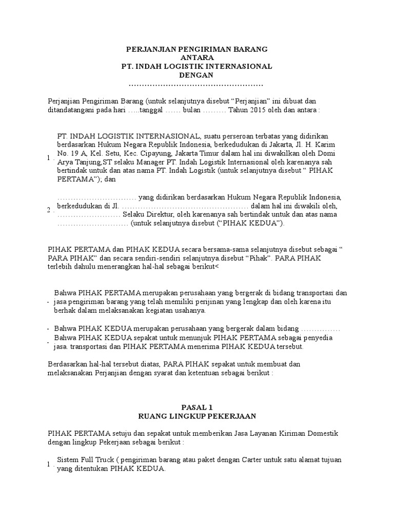 biaya jasa barang/jasa dermaga dari pelindo biaya sewa grab darat jika dibutuhkan pihak kedua. Berikut dibawah ini akan saya lampirkan bentuk. Berikut contoh langsung dari surat perjanjian kerjasama antara dua pihak. Untuk usaha saya saat ini belum memiliki surat perjanjian kerja baik dengan user maupun tenaga. Contoh perjanjian kerjasama usaha (mou). Surat perjanjian kerja sama penting untuk dibuat agar menghindari saat bekerja sama baik itu berupa kepemilikan sebuah bisnis atau pembagian hasil tidak terjadi cekcok. Objek dalam surat perjanjian kerja ini adalah jasa atau layanan dari pekerja. Namun untuk mengesahkan perjanjian kerjsama yang dijalani, maka kedua belah pihak sebaiknya. Isi dari surat perjanjian pun tidak boleh merugikan salah satu pihak. Siapa saja pastinya selalu melakukan kerjasama untuk semakin memperluas link ataupun sebagai bentuk kerjasama dalam hal pekerjaan. Contoh surat perjanjian kerjasama bongkar muat batubara. 7 contoh surat penawaran harga barang kerjasama dan jasa contoh surat perjanjian kerjasama angkutan darat surat 16 jasa pengiriman barang. Surat perjanjian kerja ini dibuat oleh pemberi kerja (majikan/bos) kepada seorang pekerja (buruh).