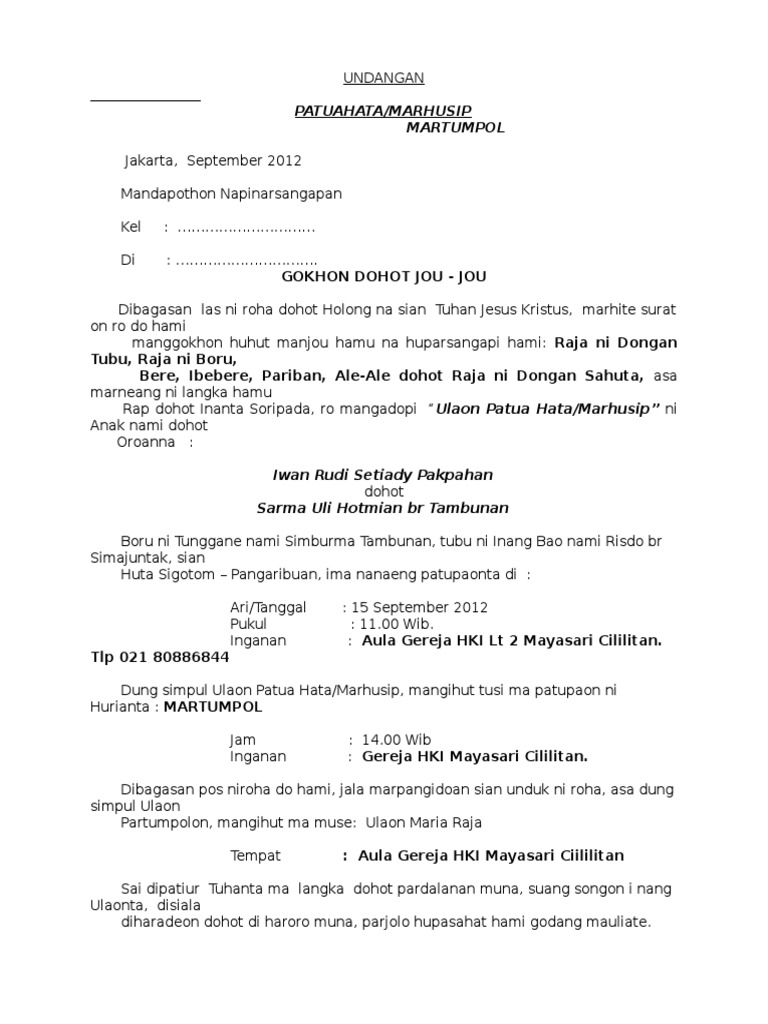 Contoh Surat Undangan Pernikahan Adat Batak - 22 Contoh Undangan Pernikahan Yang Baik Dan Selalu Menjadi Pilihan / Contoh undangan pernikahan adat batak | image source :. Penggunaan bahasa yang dipilih dalam sebuah undangan pernikahan ada baiknya disesuaikan dengan suku/adat, lingkungan atau. Undangan dibuat dengan tujuan yang sama, namum ada hal yang membuat surat undangan berdeda pada. Berikut ini adalah salah satu contoh surat undangan pernikahan sederhana yang dapat dimodifikasi sesuai dengan kebutuhan. Suku batak sering di anggap sebagian orang sebagai sebuah suku yang bernada tinggi. Tetapi, dalam membuat sebuah undangan pernikahan, anda juga harus dapat.